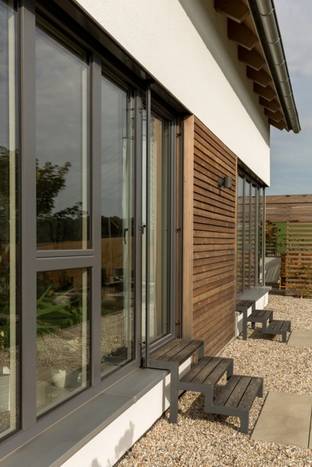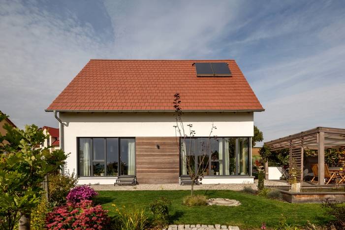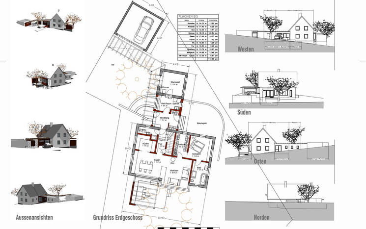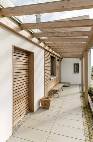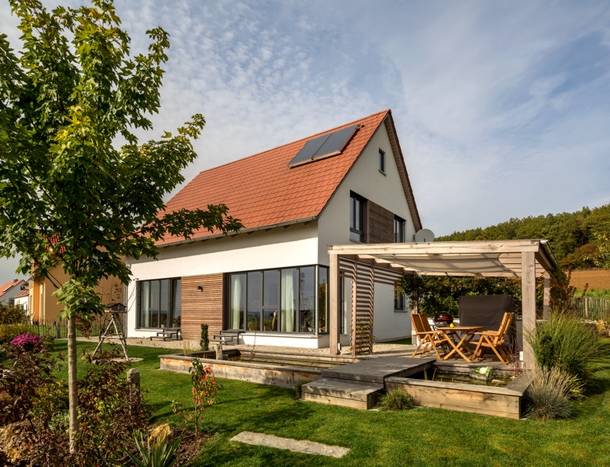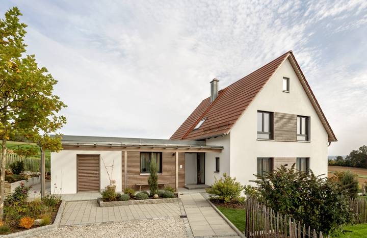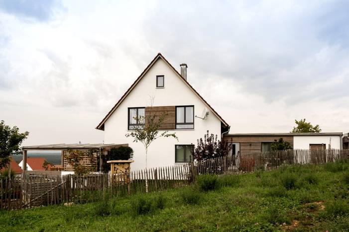 Neubau eines Einfamilienhauses mit Büro-Werkstattanbau in Holzbauweise; nicht unterkellert